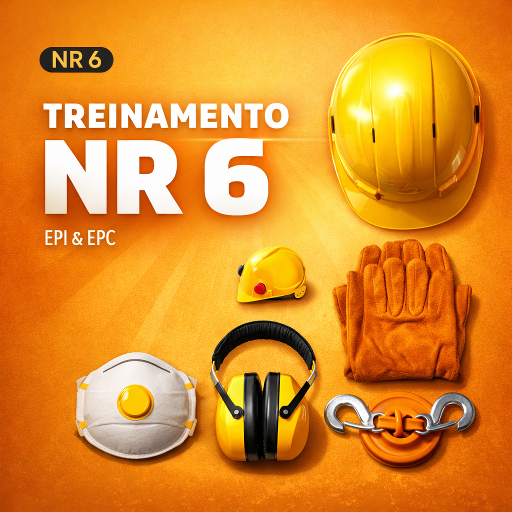 Equipamento de Proteção Individual e Coletiva. Treinamento sobre seleção, uso, conservação e limitações de EPIs e EPCs. Essencial para garantir proteção adequada em ambientes de risco.