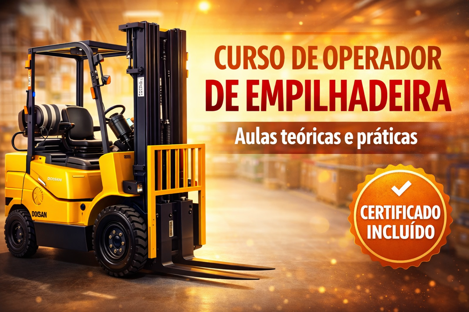 Operação de Empilhadeiras. Capacitação para operadores de empilhadeiras com segurança. Inclui conhecimentos técnicos, inspeção de equipamentos e procedimentos seguros de operação em diferentes ambientes.