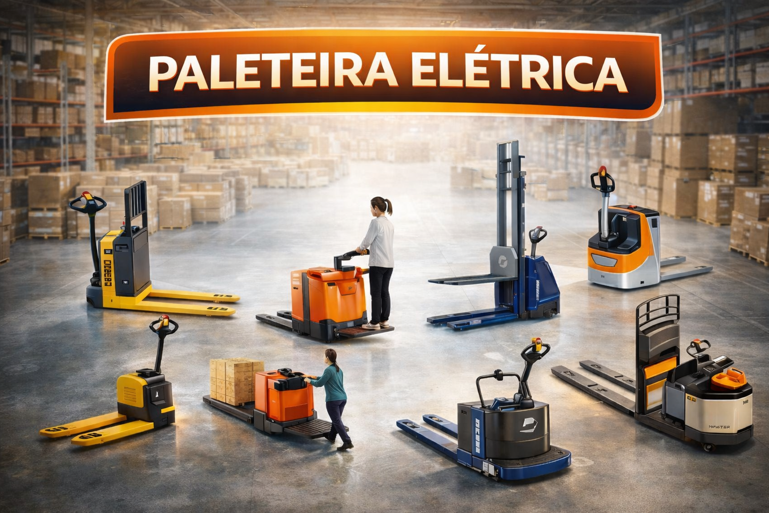 Operação de Transpaleteira Elétrica. Treinamento para operadores de transpaleteiras. Aborda segurança, inspeção diária, carga e descarga, e movimentação segura de materiais.
